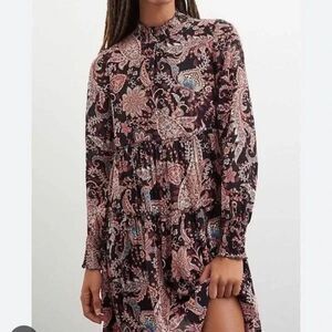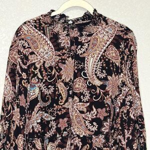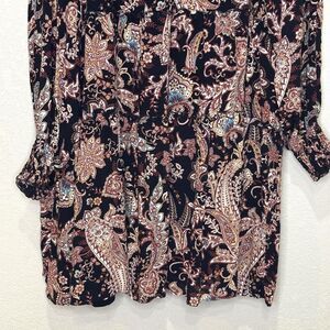Anthropologie Dress Womens 1X Paisley Floral Long Sleeve Boho Tiered Viscose