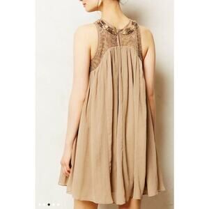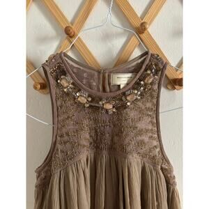 Anthropologie Dress Women's 4 Sonora Embellished Taupe Beaded Moulinette Soeurs