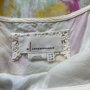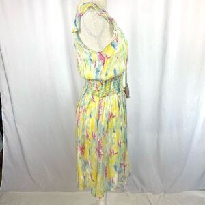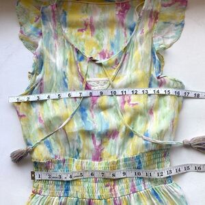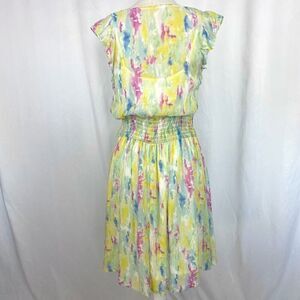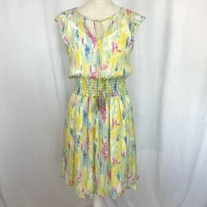 Anthropologie Dress Women’s 8 Yellow Watercolor Smocked Waist Flutter Sleeve Fai