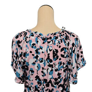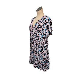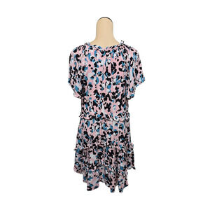Anthropologie Dress Womens Medium Pink Blue Black Tiered Ruffle Short Sleeve