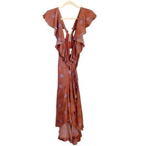 Anthropologie Ruffle Sleeve Printed Wrap Maxi Dress XS