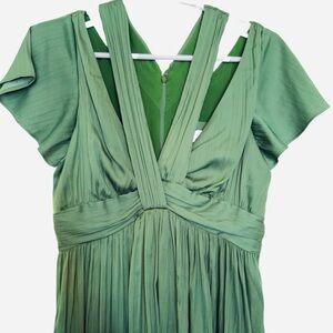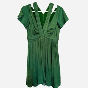 Anthropologie Dresses Deep V-Neck Vibrant Mini Dress Pleated Green Size 2