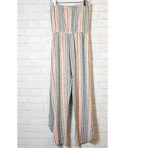 Anthropologie Drew Emerson Multicolor Striped Strapless Open Leg Linen Jumpsuit