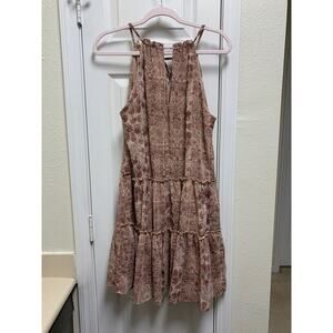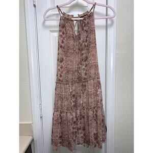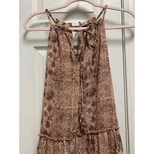 Anthropologie Drew Floral Tiered V Neck Shimmer Halter Mini Dress Size Small