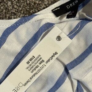 Elevate your wardrobe with this stunning Anthropologie Drew Seaside Stripe Top. Featuring a blue and white denim-inspired stripe, this top is soft, flowy, and full of eye-catching detail. Perfect for brunch, beach days, or layering with jeans and sandals.