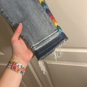 Anthropologie Driftwood Jackie Embroidered Rainbow Raw Hem Chevron Jeans