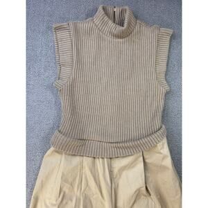 Anthropologie Du Paradis Twofer Jumpsuit Knit Mixed Media Wide Leg Tan Sz Small