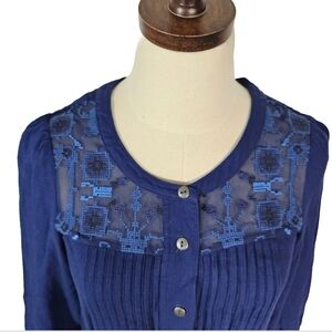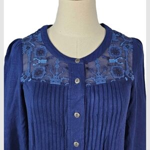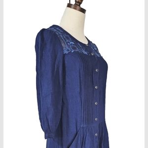 Anthropologie Dubois Embroidered Blue Boho Lagenlook Tunic Short Dress Size 0