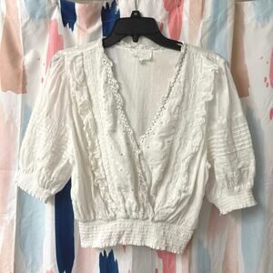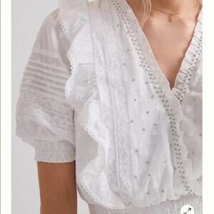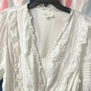 Anthropologie Duet Ginevra Ruffled Embroidered Blouse Size XL