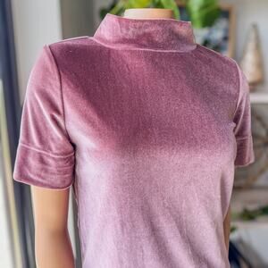 Anthropologie Dusty Rose Blush Krisha Velvet Mock Neck Short Sleeve Top, X-Small
