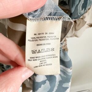 Anthropologie E by Eloise Blue Cream Brown Floral Ruffle Trim Sheer Kimono robe. Size XS/S. Oversized fit, so fits a medium as well. I wear a small to medium and am wearing it in the photos. Absolutely gorgeous piece. Comes with a matching sash tie belt that is removable, but I wore it without it because its more flattering. Can be worn with a dress, casual outfit, as a swim cover up or as a sheer robe. I have gotten endless compliments on this stunner. It does have some spots on the brand tag that will probably come out in the wash and also some pulling near the bottom (pictured). But it doesn't stop me from wearing it and still getting compliments. Its just so beautiful and versatile.