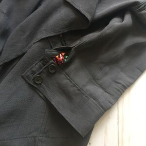 Open front slate gray cascade waterfall blazer featuring zip side pockets and roll-tab sleeves. Excellent pre-owned condition.