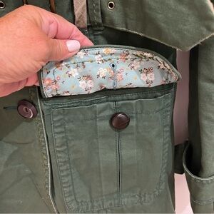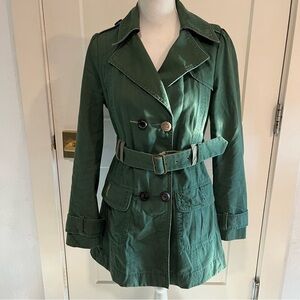 Anthropologie ETT TWA Olive Green Whimsical Fun Hand Sewn Trench Coat Sm