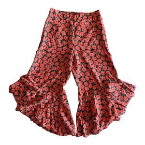 Anthropologie ETT TWA Red Floral Ruffle Flare Pants Festival Boho Y2K Size 2