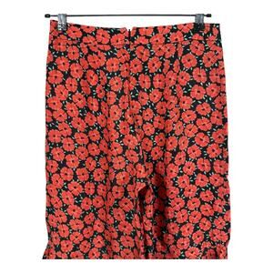 Anthropologie ETT TWA VirginieRed Floral Ruffle Flared Poppy Print Pants Size 2