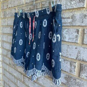 Anthropologie ETT:TWA Embroidered Eyelet Chambray 100% Cotton Shorts Women's Size M.