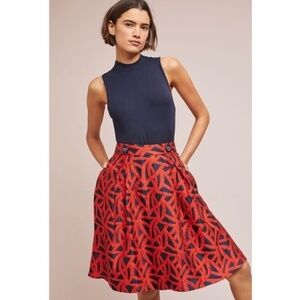 Anthropologie EVA FRANCO Mariner Skirt Red Blue A-Line Pleated Nautical Size 8
