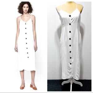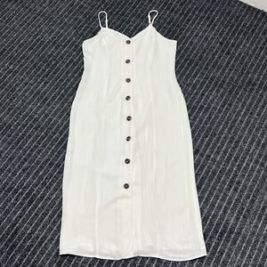 Anthropologie EVERLY White Sleeveless Button-Up Midi Dress Size Small. Embrace the popular button-up '90s look with this spaghetti-strap style from EVERLY. Adjustable spaghetti straps. 100% Rayon. Excellent preowned condition. No rips and no stains. Clean ready to wear. Please see all pictures carefully for more details and measurements. Smoke and pet free home. Thank you so much for looking!!