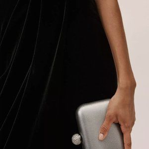 Part of a special collection from BHLDN. For the full assortment, visit BHLDN.com. Crafted from luxe stretch velvet, this fall-ready dress features a sultry off-the-shoulder neckline and feminine tulip hem.
