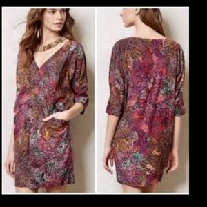 Anthropologie Edme & Styllte Drape Front V Neck Multicolor Dress Size Small