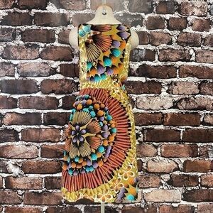 Anthropologie Edme Esyllte Dress Sleeveless Silk Orange Teal Floral Size 6