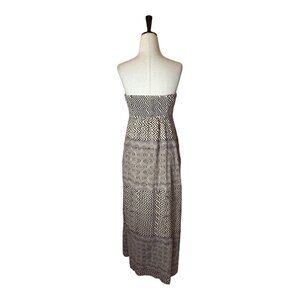 Anthropologie Edme & Esyllte Dress Women 0 Ivory Brown Strapless Hypnotic Maxi