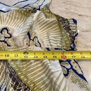 Anthropologie Edme & Esyllte Silk Kerchief Mini Dress – Blue/Green Geo – Size Large