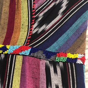 • sleeveless strapless rainbow multicolor striped & geometric patterned dress