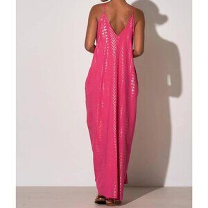 Anthropologie Elan Arrow Print Maxi Dress Women's M Medium Pink Gold Shimmer NEW