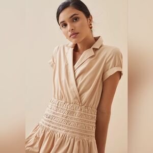 This elegant tan wrap dress is perfect for any occasion. Its flattering design and comfortable fit make it a must-have in your wardrobe.