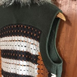Anthropologie Elevenese Crochet Vest Wool Jacket Faux Fur Women’s XS