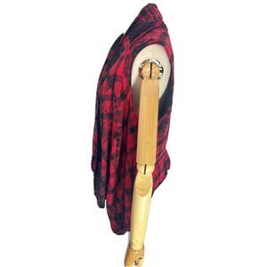 Elevenses Roxanne Red & Black Buffalo Plaid with Black with Tie Dye accent Vest sleeveless jacket