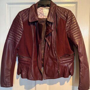 Anthropologie- Elevenses Burgundy MOTO Jacket Large