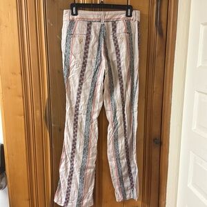 Anthropologie Elevenses Coral, Blue, and White Design Pants