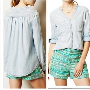ANTHROPOLOGIE Elevenses Costa Aztec Embroidered Shorts 0 Green