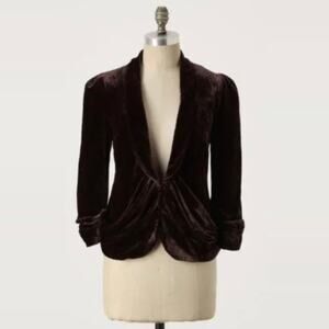 Anthropologie Cyclorama Drape Velvet Blazer Jacket by Elevenses, size 0