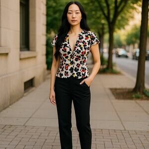 Anthropologie Elevenses Dahlia Pressed Floral Blazer Jacket NEW Size 0 Short Slv