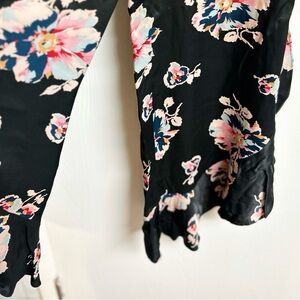 Anthropologie Elevenses Floral Tansy Ruffle Pants Size 6 Black Satin Wide Leg