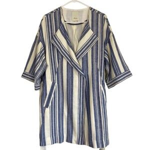 Anthropologie Elevenses Lagenlook Boho Striped Linen Duster Kimono Jacket Sz S