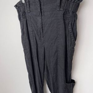 Anthropologie Elevenses Linen Blend Straight Leg Pants Black - Small