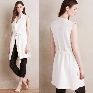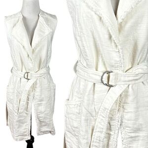 Anthropologie Elevenses Linen Coastal Natural Frayed Belted Vest Small NWT