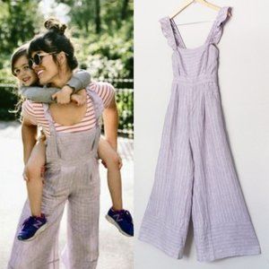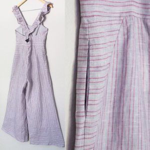 Anthropologie Elevenses Linen Nantucket Ruffle Wide Leg Jumpsuit Lavender $148