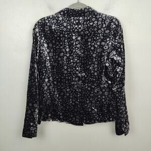 Elevenses Lumi Velvet Blazer Womens 4 Black Gray Floral Boho Preppy Bohemian