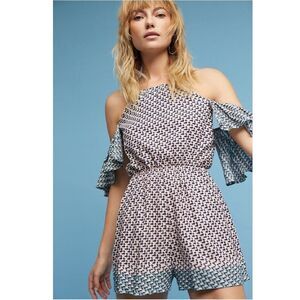 Anthropologie Elevenses Madalenna Open-Shoulder Romper Size Small