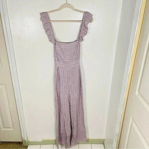 Anthropologie Elevenses Nantucket Ruffled Striped Linen Jumpsuit Size Beach