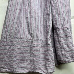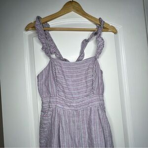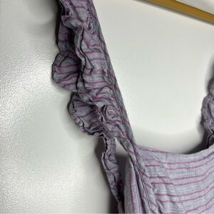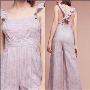 Anthropologie Elevenses Nantucket gray pink striped linen ruffle jumpsuit size 4