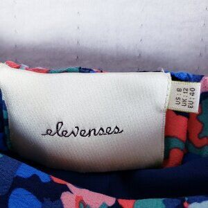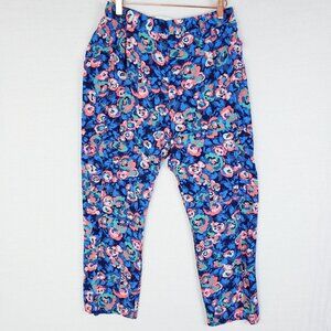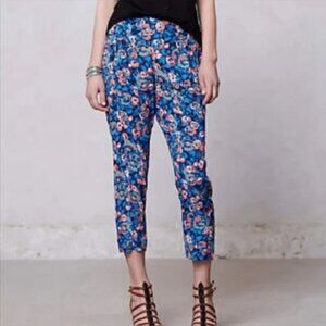Anthropologie Elevenses Pants Coral Blue Floral Print Rayon size 8 Relaxed Crop