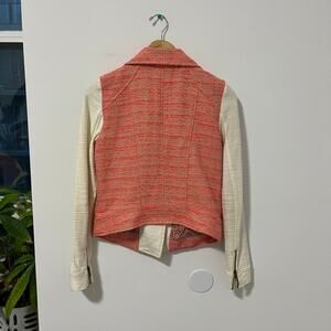 Anthropologie Elevenses Pink & White Tweed Moto Jacket Size 6. Excellent condition. Pink with white/cream sleeves. Motorcycle style jacket. Zip closure. Collared. Fully lined.