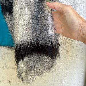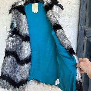 Anthropologie Elevenses Shaggy Black/Gray Chevron Striped Faux Fur Vest Small