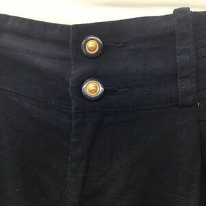 Nice Elevenses by Anthropologie Ship Shake dark navy linen blend shorts. Features turned cuffs, zip & button front, ruching around the waist, two front slit pockets & two back pockets. Fabric 55% Linen 45% Rayon
